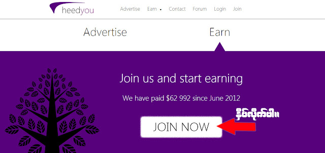 heedyou .com မွာ Register လုပ္ဖို႔အေပၚကပံုမွာျမွားျပထားတဲ့ JOIN NOW ကိုႏွိပ္လိုက္ပါ။